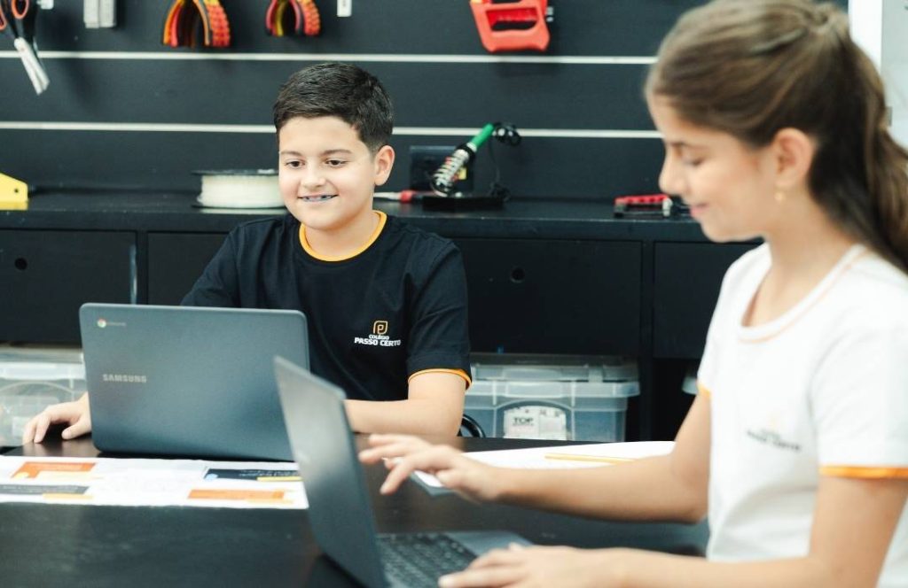 No Passo Certo Bilingual School, a tecnologia é também objeto de aprendizagem. Com o novo componente curricular de Educação Digital e Computação, nossos estudantes aprendem a analisar informações com senso crítico, compreendem como as tecnologias funcionam e impactam a sociedade, e produzem conteúdos digitais autorais de forma estratégica e consciente, utilizando ferramentas como Inteligência Artificial.